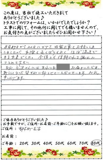 地元の業者さんで良い工事をしてくださるところをさがしました。時々折り込みチラシでトラストさんの事を思いだしお願いすることにしました。
